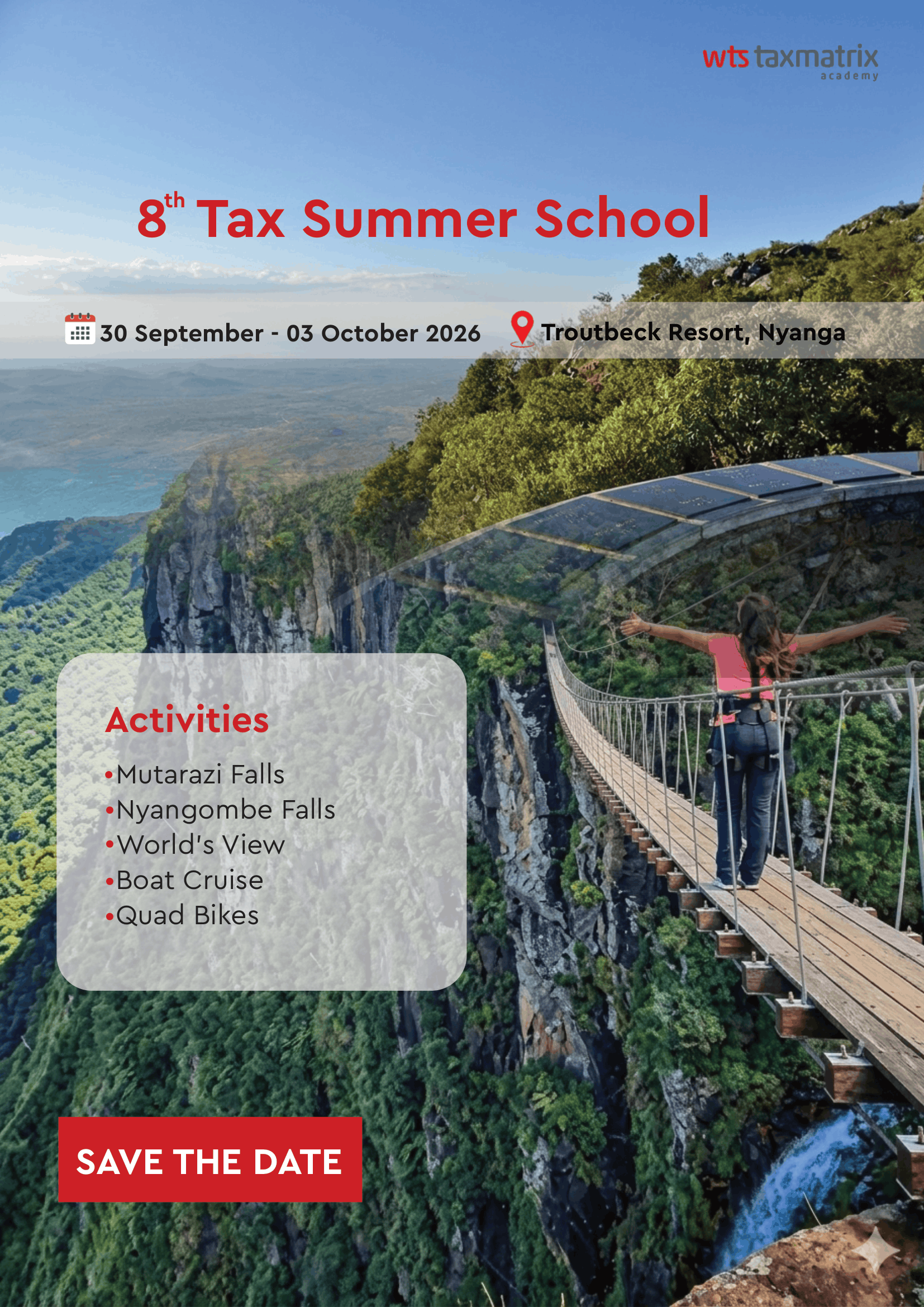 Join us for the 8th Tax Summer School, taking place from 30 September – 03 October 2026 at the scenic Troutbeck Resort, Nyanga.